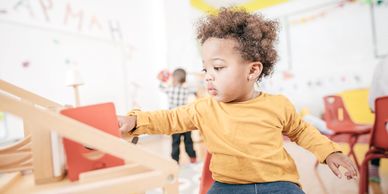 Our older toddler program is very play centered and incorporates our curriculum to not just teach your child but observes and reports how your child plays, learns, speaks, acts, and moves throughout their time here. We partner with parents on various aspects of development such as independence, teamwork and moving toward potty training.